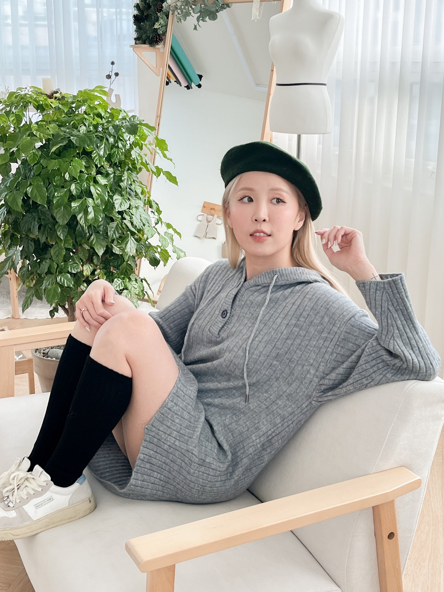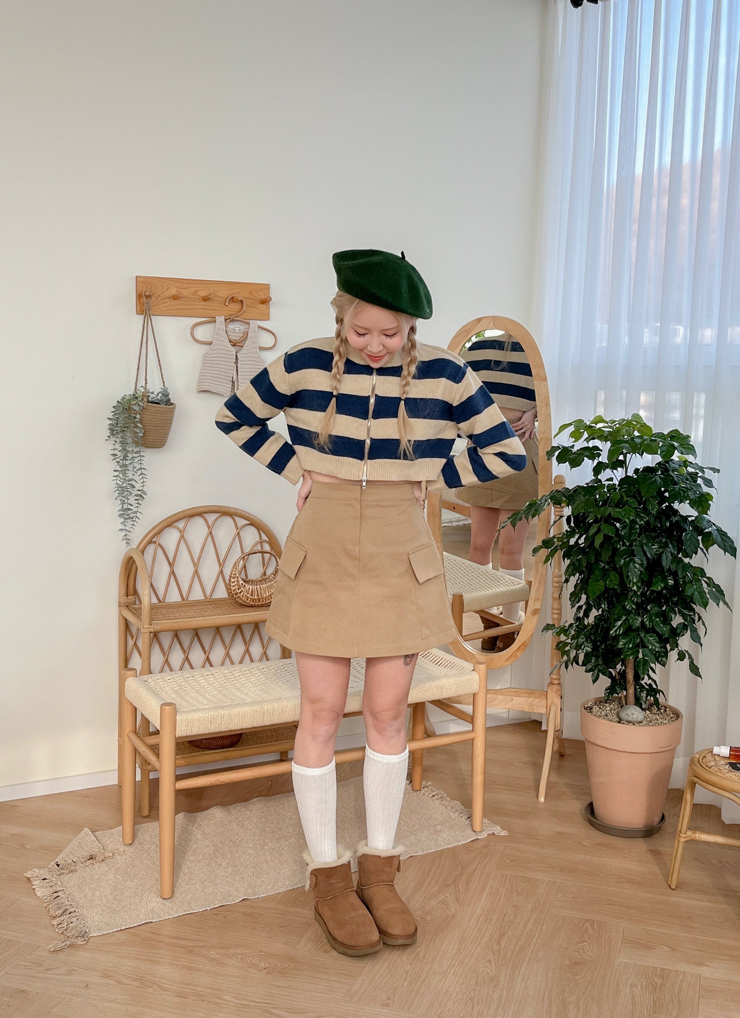 學院風百搭三色直紋7分厚身長襪