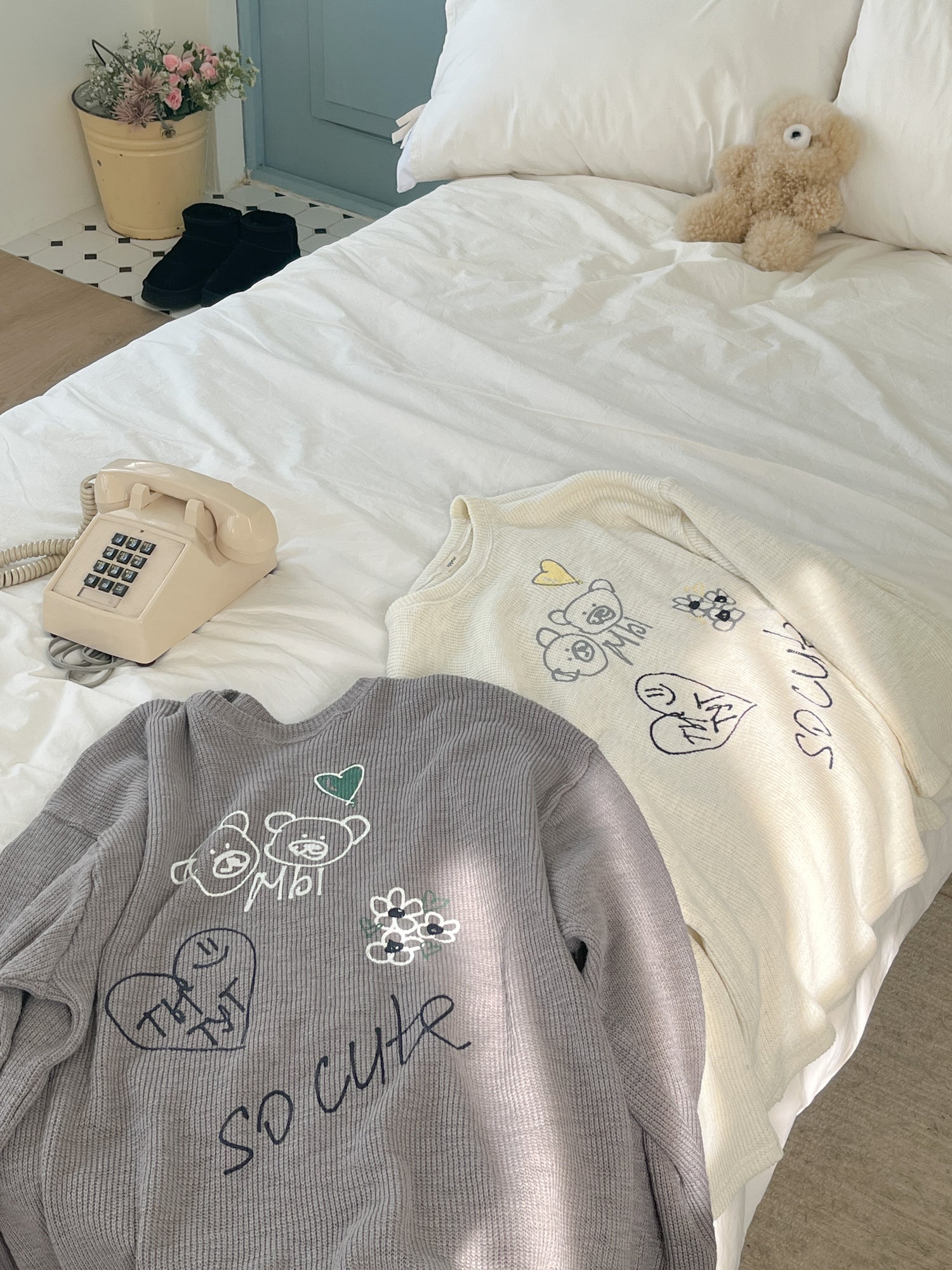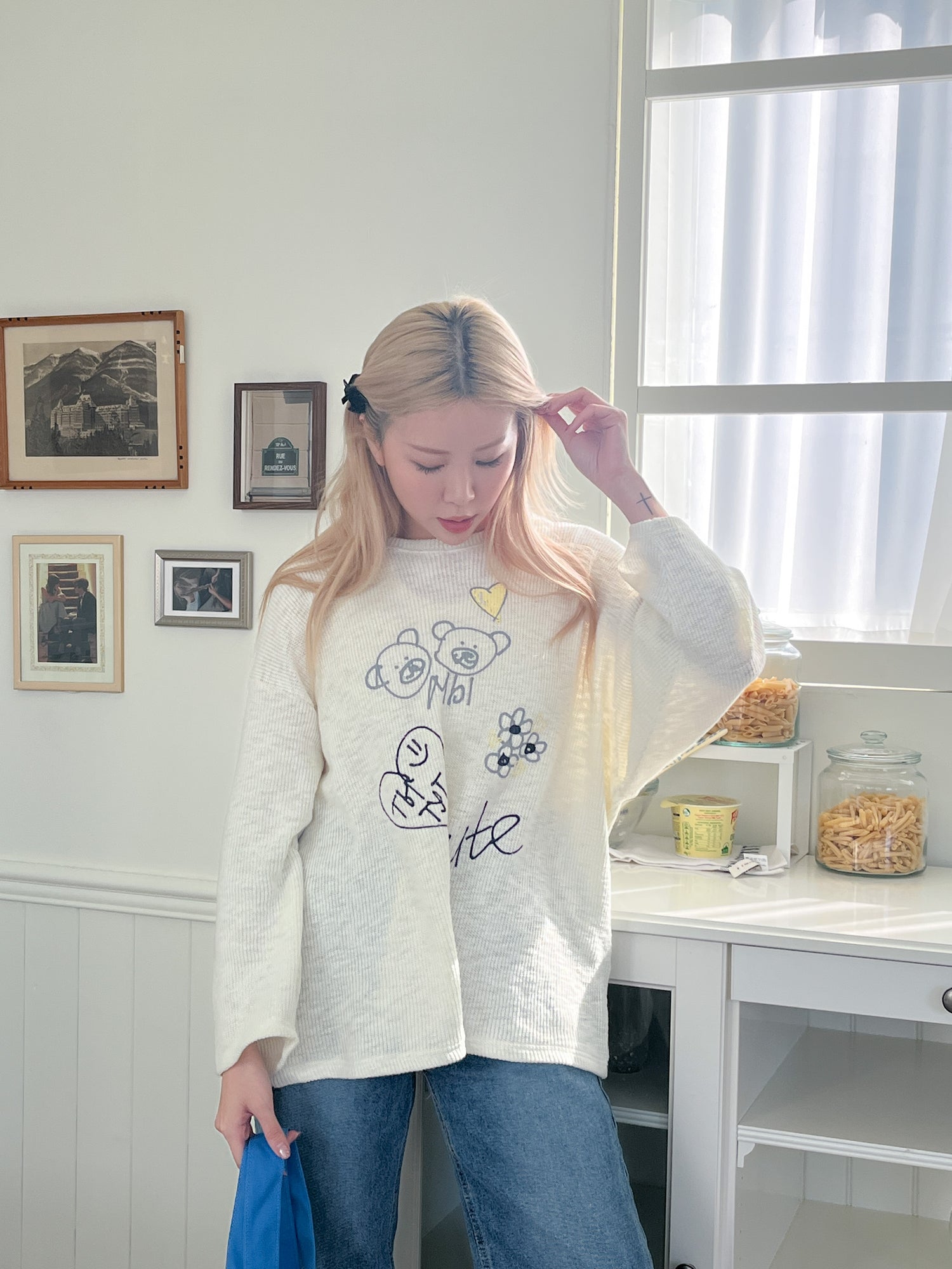 矇是你嗎?!小孩手繪塗鴉風寬鬆薄針織上衣