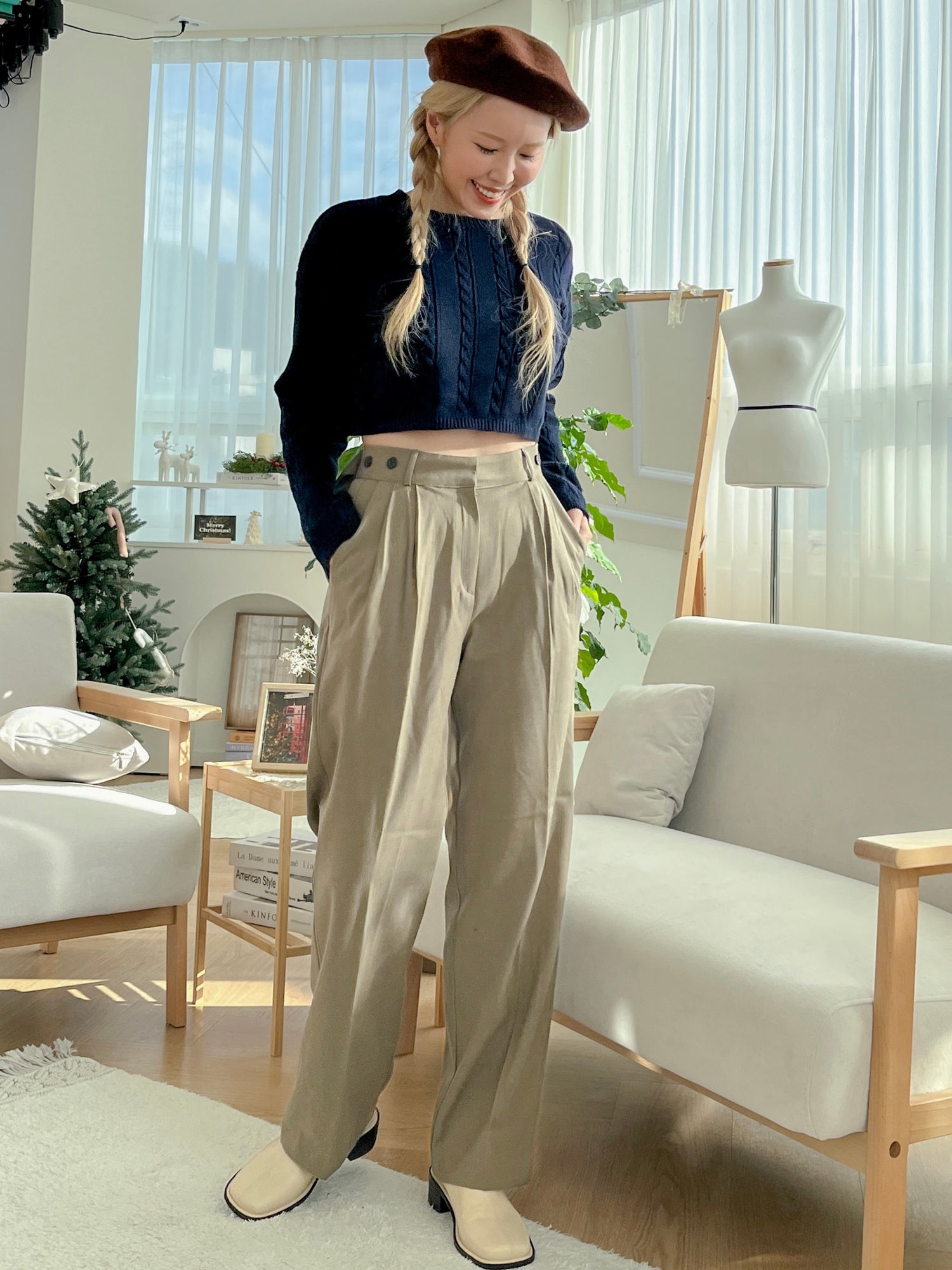 自調腰圍!! 小腹失蹤垂感雙釦落地寬西褲