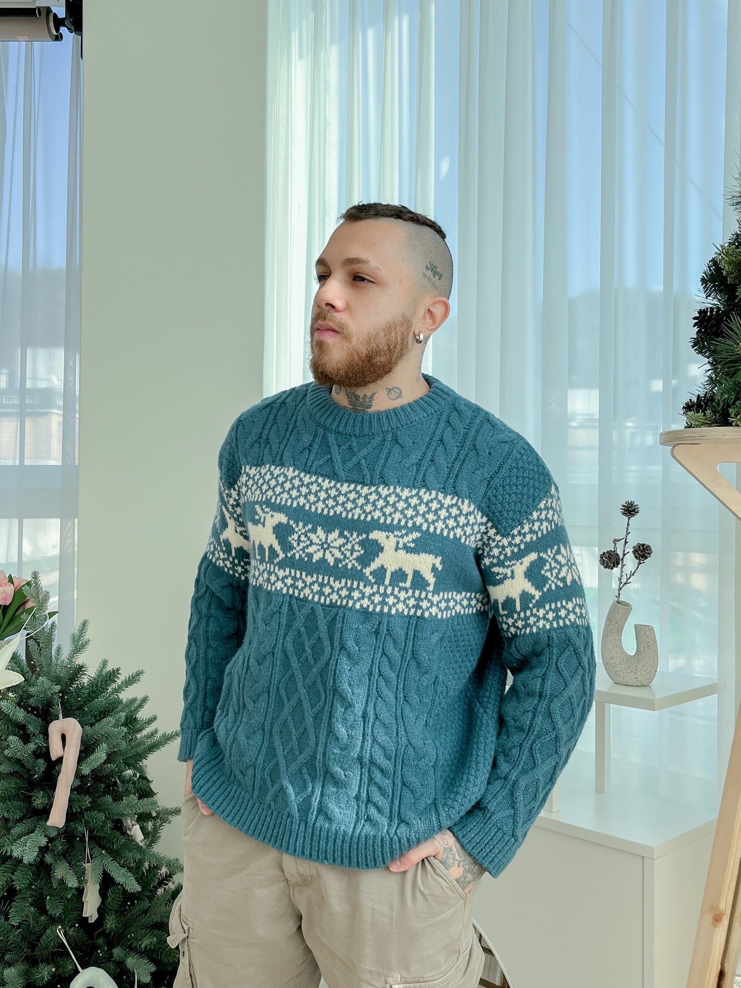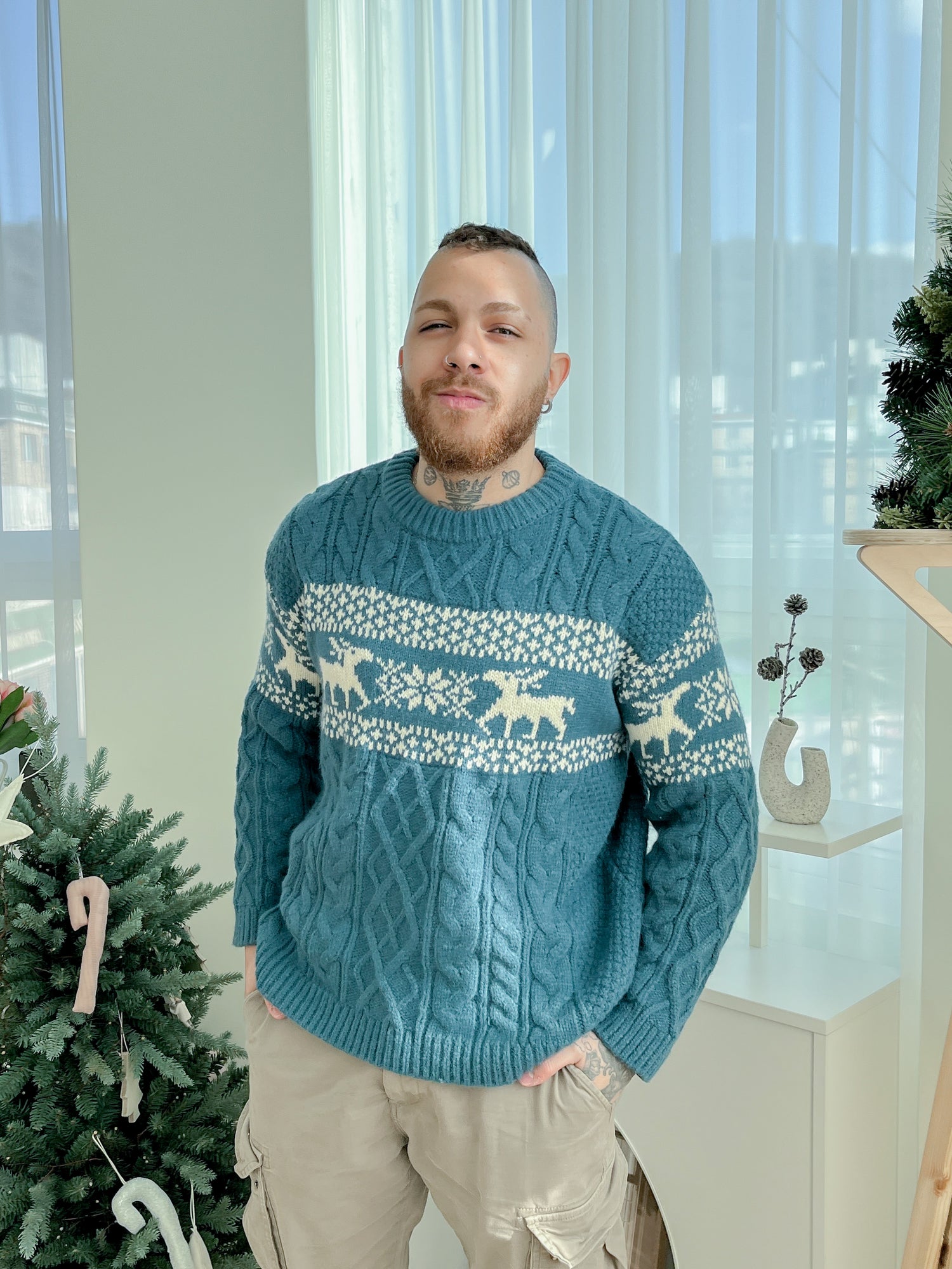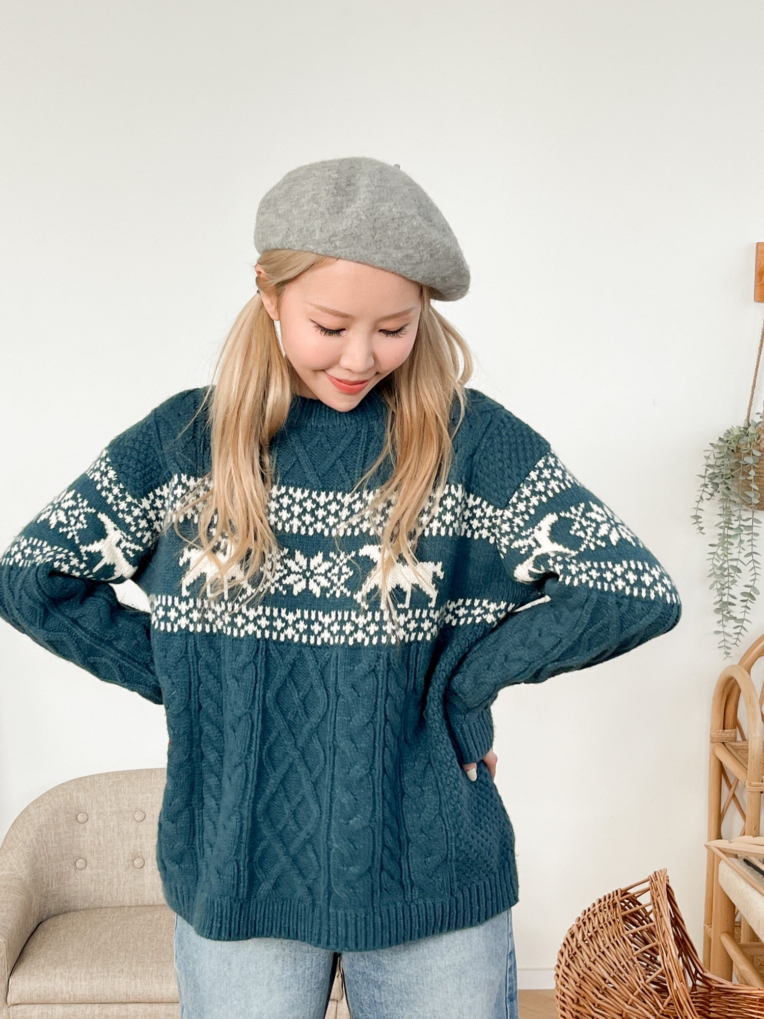 [Unisex] 冬日慵懶小鹿麻花毛衣